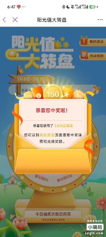 🚦 光大银行,阳光值大转盘,小水