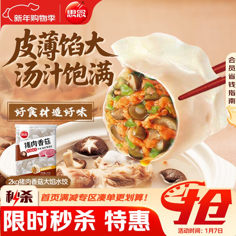 思念猪肉香菇灌汤水饺2kg约100只
