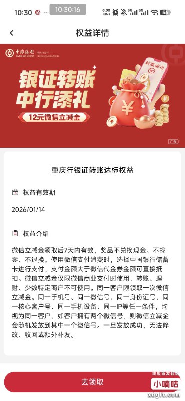 中行那个银证3000的活动,和重庆分行的可以一起完成,刚转完重庆立减金就到权益里了